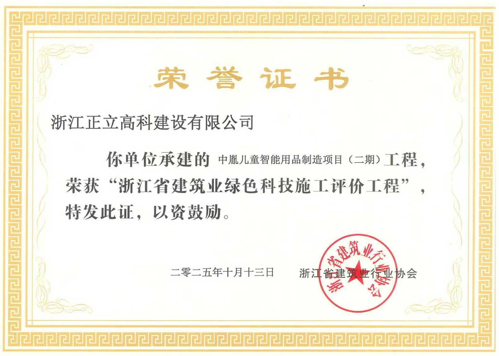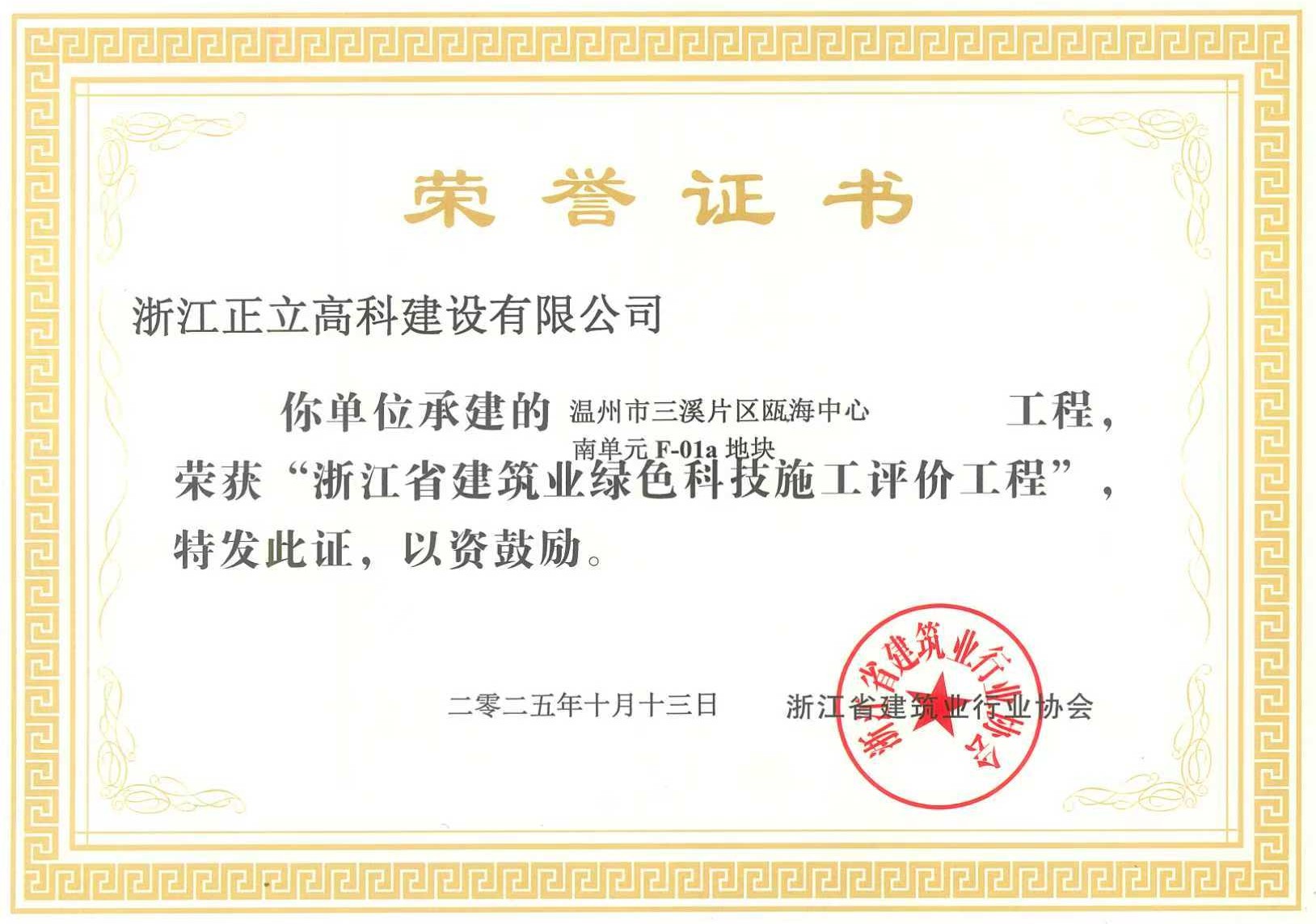 在这收获的季节里,正立集团再传捷报!浙江省建筑业行业协会公布2024年度第二批浙江省绿色科技施工评价工程名单,其中子公司正立高科承建的温州市三溪片区瓯海中心南单元F-01a地块项目以及中胤儿童智能用品制造项目(二期)两项工程榜上有名。